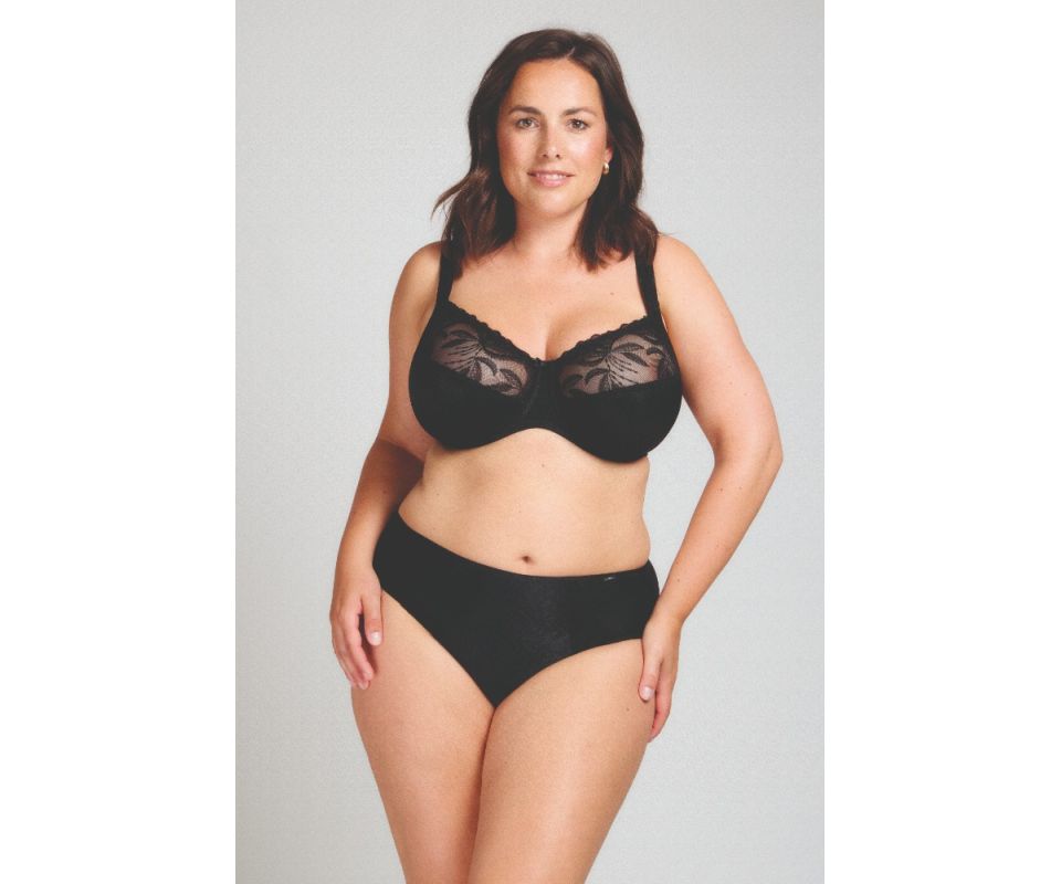 K podprsence Adel perfektně ladí klasické černé kalhotky Triola. Nadčasový střih v kombinaci s jemným žakárem a výšivkovými vsadkami podtrhuje ženské křivky a zaručuje pohodlí po celý den. Zadní díl z hladkého úpletu a bavlněný klínek přispívají k dokonalému pocitu při nošení.