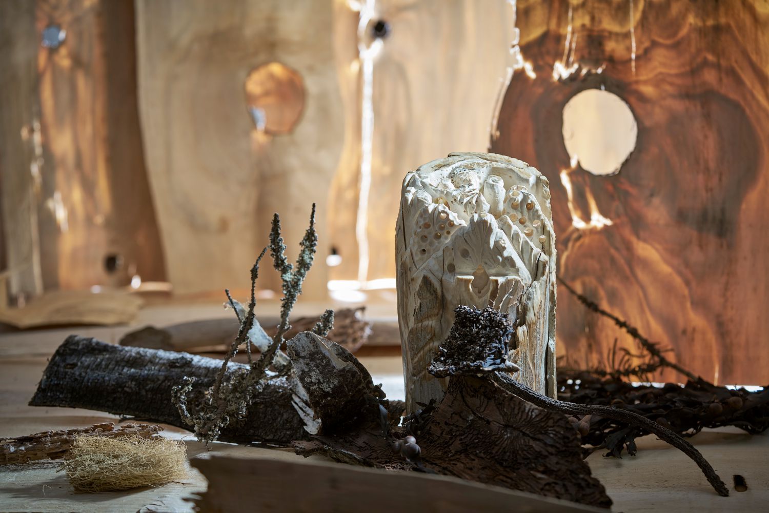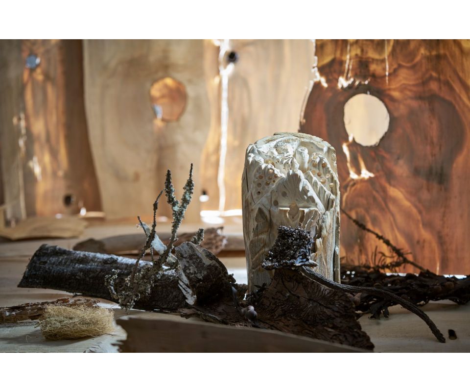 Šperkař a designér Hanuš Lamr se pravidelně vydává za hranice tradiční tvorby. Po stopách svého předka, který kdysi putoval za původními obyvateli do jihoamerických pralesů, vytvořil unikátní prostorový artefakt z mamutího klu pro soukromou sbírku. Tři měsíce práce s prastarým materiálem vyústily ve fantazijní krajinu plnou rostlin, tvorů a přírodních úkazů. Zároveň se jeho tvorba rozrůstá o nové předměty pro kolekce BLOOM a LICHEN. Z druhé jmenované pak vyrůstá další kolekce - Příroda vs. civilizace, v níž kombinuje přírodu s odpady civilizace a překvapivě i s humorem.