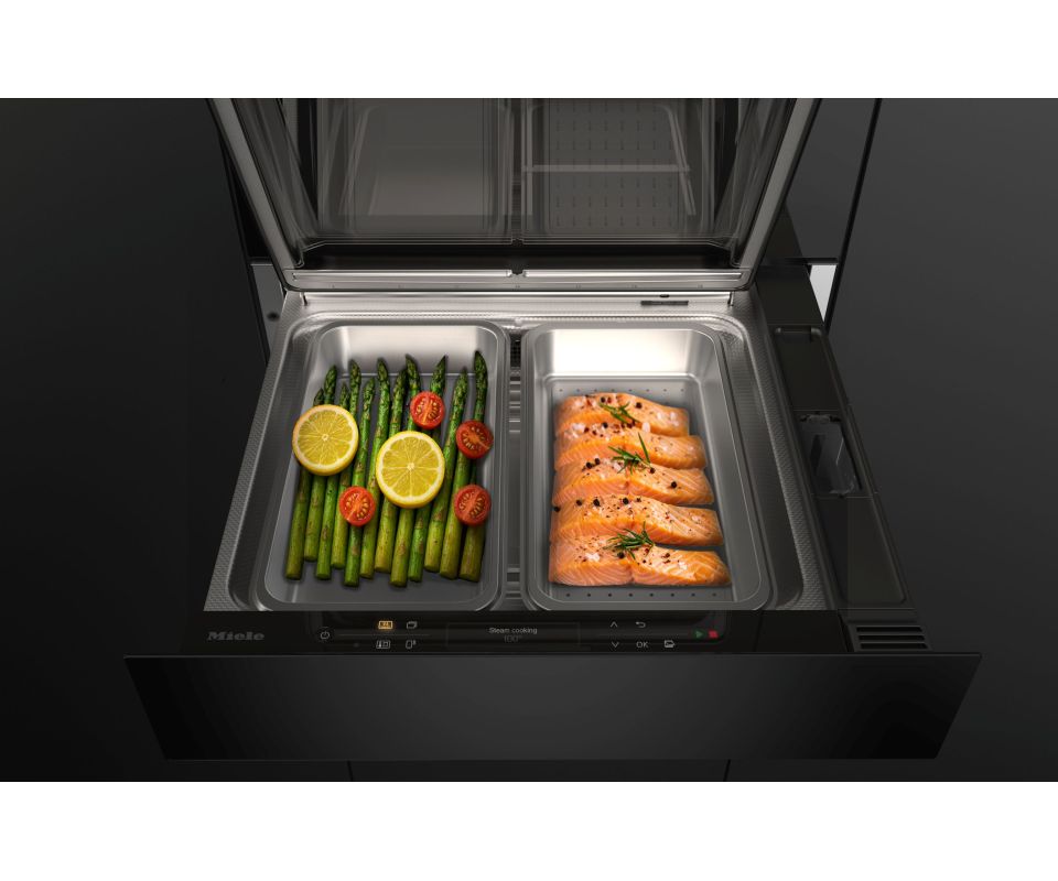 Parní zásuvka s výškou pouhých 14 cm se stává elegantním řešením pro malé kuchyně. Ve spojení s kompaktní troubou s mikrovlnou vzniká unikátní sestava 3 v 1 pro pečení, ohřev i zdravé vaření v páře, což je ideální pro přípravu menu až pro čtyři osoby. Technologie DualSteam a přes 100 automatických programů zajistí, že pokrmy budou vždy skvěle chutnat. Vaření v páře navíc zachovává vitamíny, minerály a plnou chuť potravin. Zásuvka přitom spotřebuje až o 30 % méně energie než klasické 45cm parní trouby a má i nižší spotřebu vody.