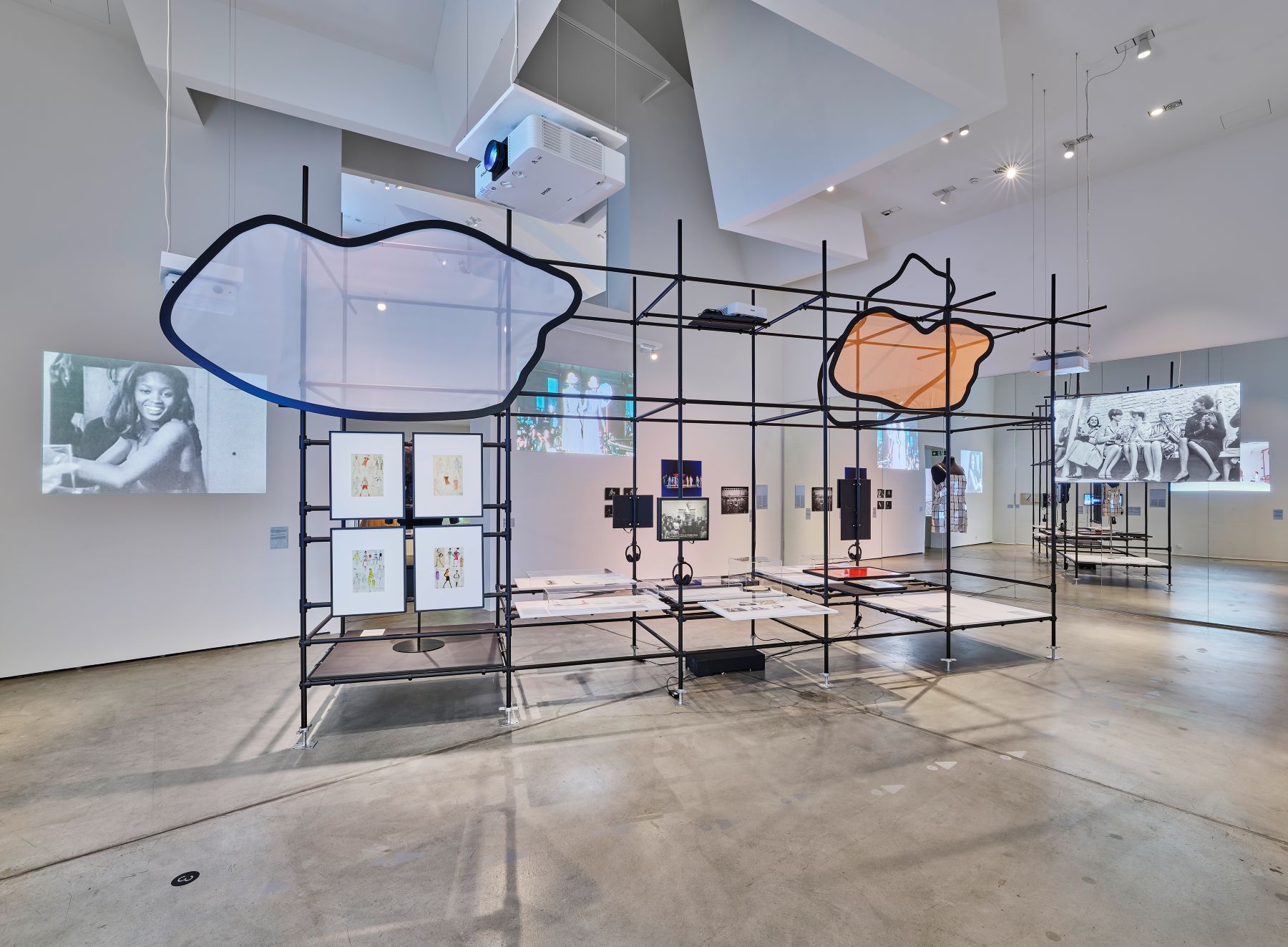 Druhá část výstavy sleduje období, kdy se módní přehlídky s nástupem prêt-à-porter přesunuly ze salonů do měst a propojily se se subkulturami. V roce 1958 pozvala značka Chloé hosty do pařížské kavárny Café de Flore. Návrháři jako Courrèges a Paco Rabanne experimentovali s prostorem a pohybem, zatímco Kenzo proměnil své přehlídky v taneční večírky. Legendární je Battle of Versailles – módní souboj francouzských a amerických návrhářů z roku 1973, který znamenal průlom americké módy na mezinárodní scénu. Černošské modelky jako Pat Cleveland proměnily tehdy zažitý obraz mola a módní přehlídky se staly platformou společenské změny. Význam získaly také pozvánky na přehlídky, které se staly nedílnou součástí celkové inscenace.