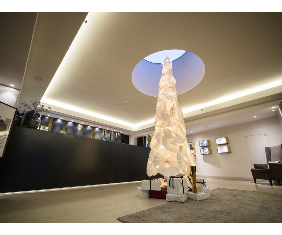 A jak budou vypadat Vánoce v Mandarin Oriental, Prague? Během prosince čeká návštěvníky v hotelovém lobby třímetrový vánoční strom vyrobený kompletně z papíru. Jeho design vznikl ve spolupráci s Olgou Šípkovou z malostranského papírnictví Pompomtime. Vánoční atmosféru dále doplňují pečlivě vybrané dekorace s českým rukopisem Artisème.