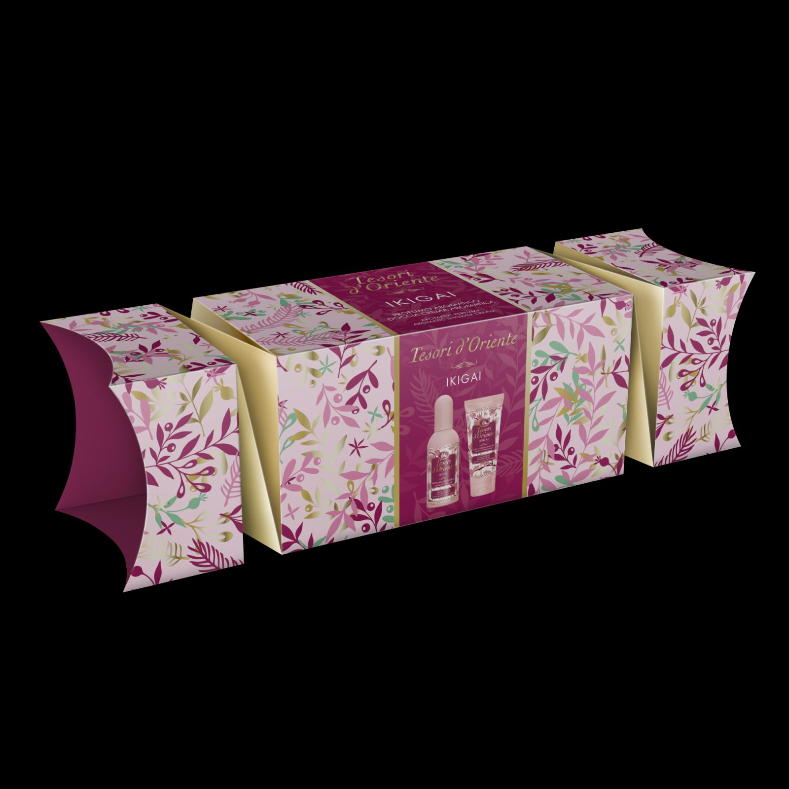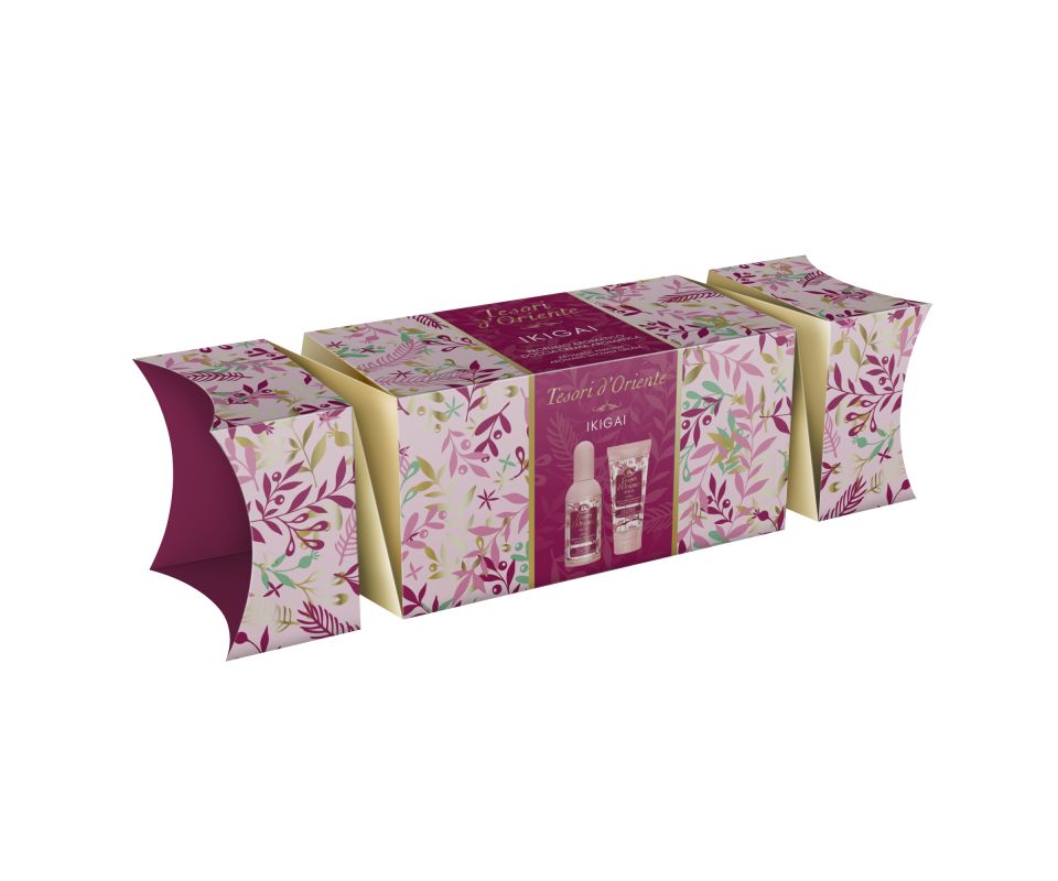 Řada Tesori d'Oriente Ikigai je inspirovaná japonskou filozofií života v rovnováze, klidu a kráse přítomného okamžiku. Jemná květinová vůně je jako dotek jarního rána pod rozkvetlou sakurou. Vánoční balení obsahuje parfémovou vodu a sprchový gel.
