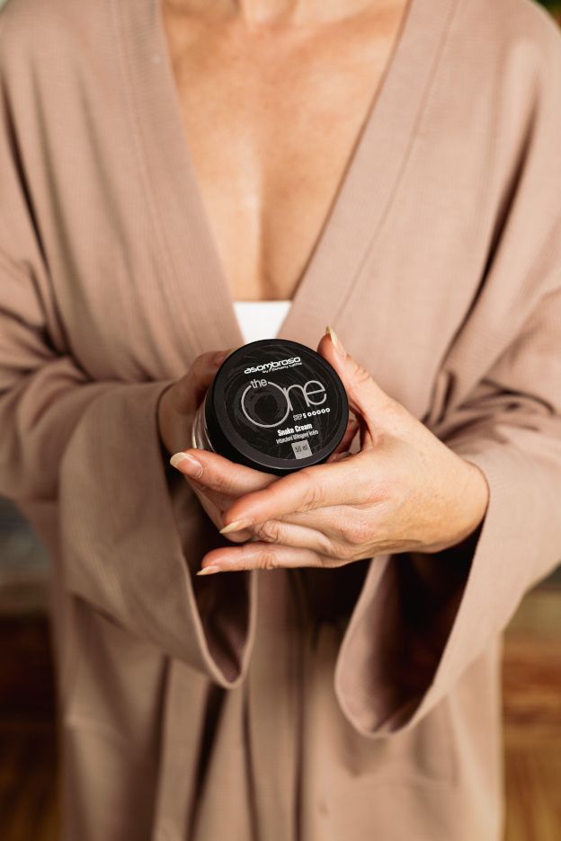 K největším bestsellerům a „must have“ Asombroso patří ikonický krém The One Snake Cream. Je skvělý pro namáhanou pleť, kterou okamžitě vzpruží, zregeneruje, vyživí, vyhladí a perfektně hydratuje cennými složkami včetně syntetického hadího jedu Syn-ake. Ten má podobné účinky jako botox, uvolňuje obličejové svaly a redukuje tak jemné vrásky a zpevňuje kontury. Pleť dále ošetří hydratující kyselina hyaluronová, LACTIL®, který výrazně zvyšuje hladinu vlhkosti v pleti, olivový olej, glycerin, lecitin a antioxidant vitamín E. Krém je navíc zabalen v ručně šitém, luxusním saténovém pytlíčku.