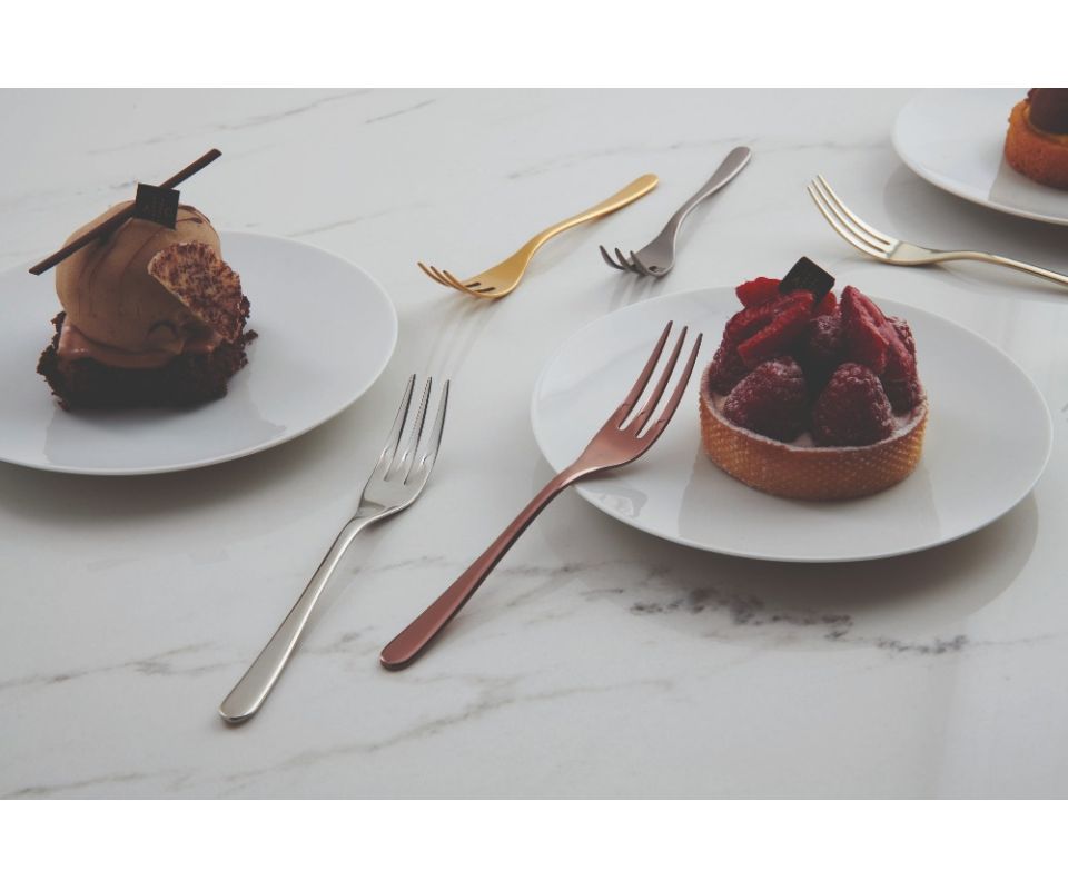 Symfonie barev, která dezertům zkrátka sluší. S moderním setem dezertních vidliček italské značky Sambonet bude ochutnávka právě upečeného koláče, svátečního dortu nebo třeba nepečeného cheesecaku skutečně za odměnu. Hravý design 6 elegantních odstínů v kombinaci s minimalistickým tvarem jemných linií působí svěže, nadčasově a skvěle doladí každý prostřený stůl. Příbor je navíc vyroben z kvalitní nerezové oceli s PVD úpravou pro zajištění vysokého lesku, tvrdosti a ochrany proti opotřebení. Jde tak o praktické, odolné vybavení s dlouhou životností. Máte ve svém okolí milovníka nejen domácích laskomin se smyslem pro detail? Pořiďte mu sadu dezertních vidliček z kolekce Taste, kterou najdete v prodejnách Potten & Pannen – Staněk a na e-shopu www.pottenpannen.cz za 990 Kč.