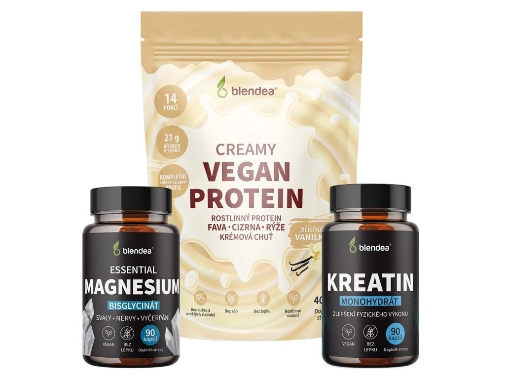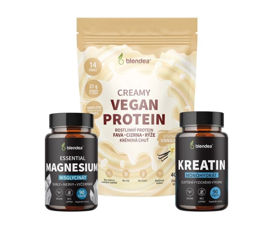 Máte doma sportovce, který si potrpí na výkon? Blendea Fitness balíček obsahuje rostlinný protein s vanilkovou příchutí, kreatin v kapslích a k tomu vysoce vstřebatelný hořčík bisglycinát. Tyto tři suplementy tvoří základní palivo pro růst svalů, jejich rychlejší regeneraci a zároveň zlepšují fyzický výkon. Partner, manžel nebo třeba brácha tak dostane perfektní vánoční dárek, díky kterému se stane silnějším, rychlejším i výkonnějším. Navíc zcela přírodní cestou bez zbytečných chemických přísad.