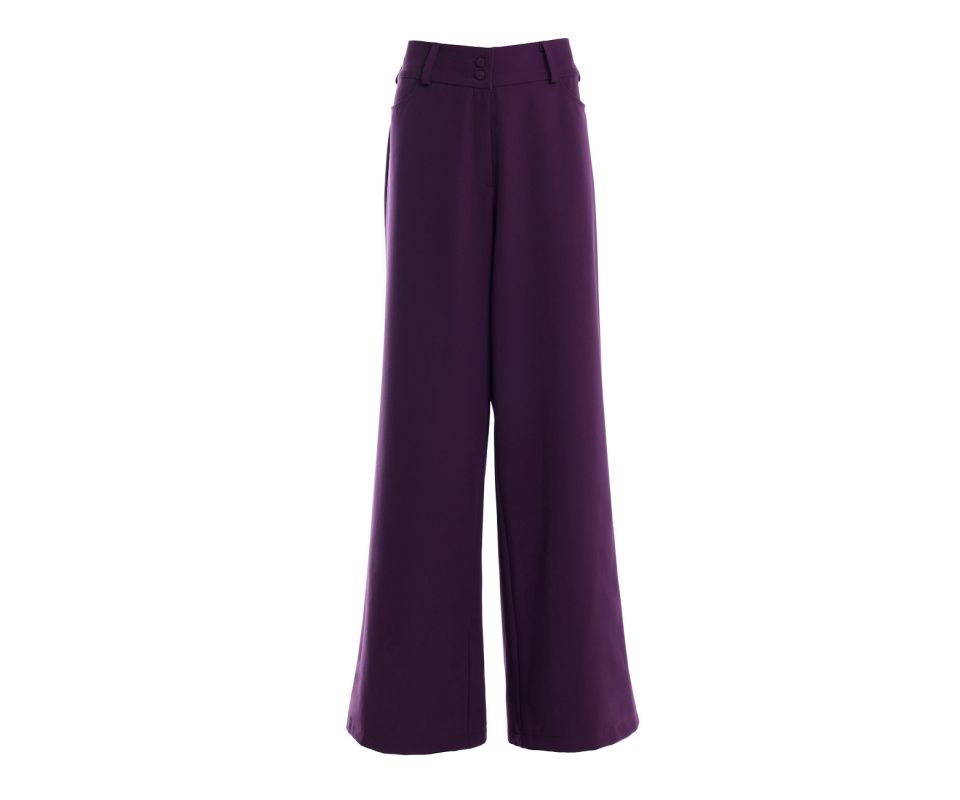 Elegantní kalhoty v hlubokém temně fialovém odstínu působí slavnostně a zároveň nadčasově. Klasický střih s rozšířenými nohavicemi lichotí každé postavě a opticky ji prodlouží. Dokonalá volba na sváteční brunch nebo pracovní vánoční večeři. Doplňte výrazným páskem, šperky nebo třpytivým psaníčkem pro extra efekt.
