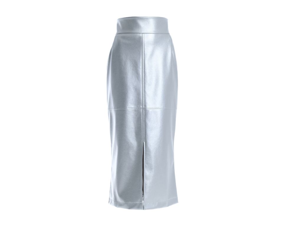 - Koženková stříbrná sukně s vysokým pasem 3990 Kč
