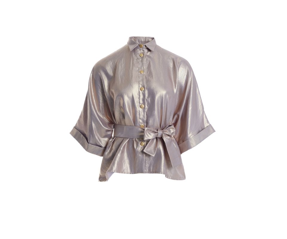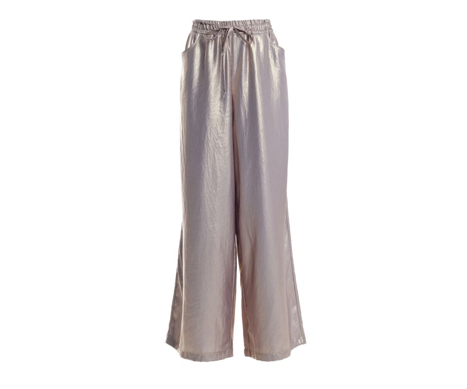 Metalicky třpytivý set v odstínu šampaň je dokonalou volbou pro slavnostní chvíle. Originálně střižený kabátek s vázačkou kolem pasu působí svěže a zároveň luxusně, široké kalhoty dodají outfitu elegantní siluetu. Volte jako působivý monochromatický komplet pro silvestrovský večer, nebo jednotlivě — horní díl s kalhotami v tlumených tónech působí chic, zlaté kalhoty s minimalistickým hřejivým topem zase nabídnou dokonalé pohodlí pro vánoční setkání.