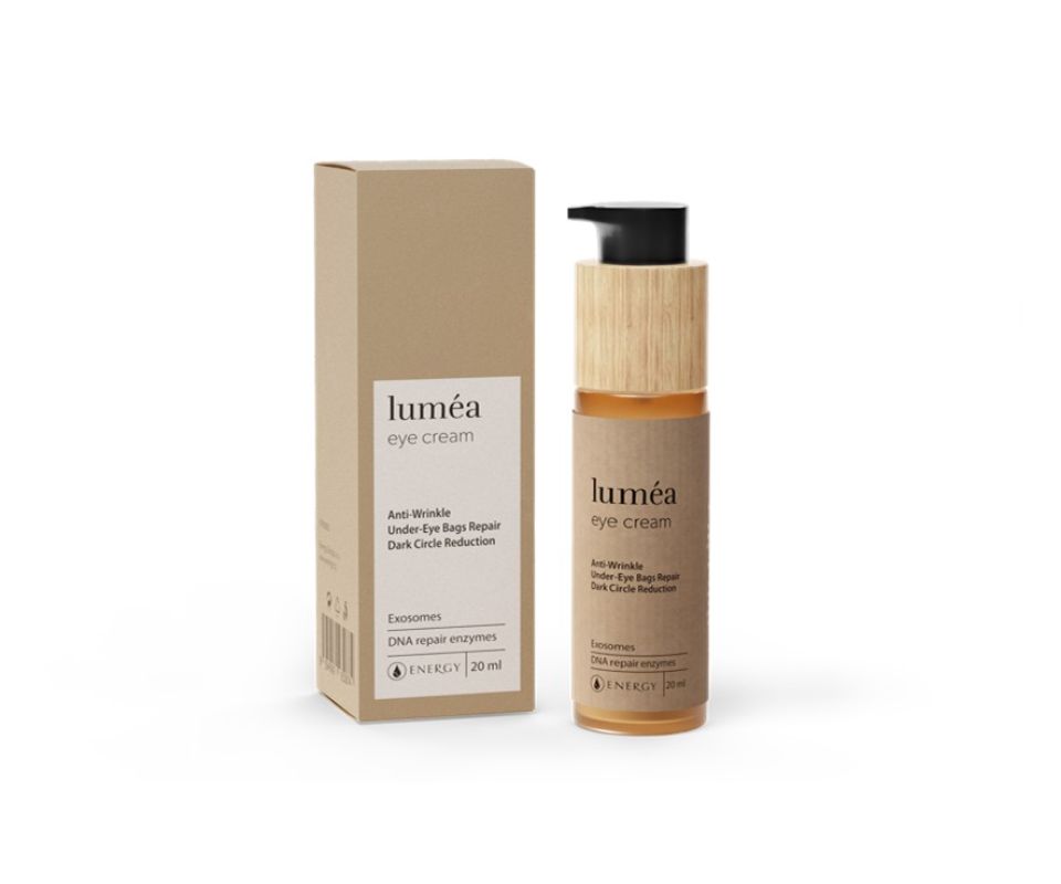 Nový oční krém Luméa eye cream je vytvořen speciálně pro potřeby jemné pokožky v okolí očí. Přináší hlubokou hydrataci, redukci otoků, kruhů pod očima, vrásek a pigmentových skvrn. Zároveň zklidňuje citlivou pleť, navrací jí pružnost a působí liftingově na ochablá víčka. Díky přírodním exosomům z mořských mikrořas dochází k výraznému podpoření regeneračních procesů a k celkovému omlazení očního okolí.
