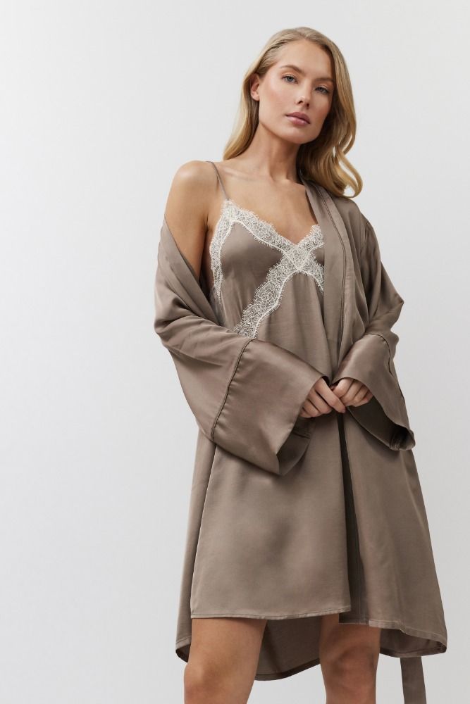 Noční košilka na ramínka – hnědá, viskózová (1199 Kč)