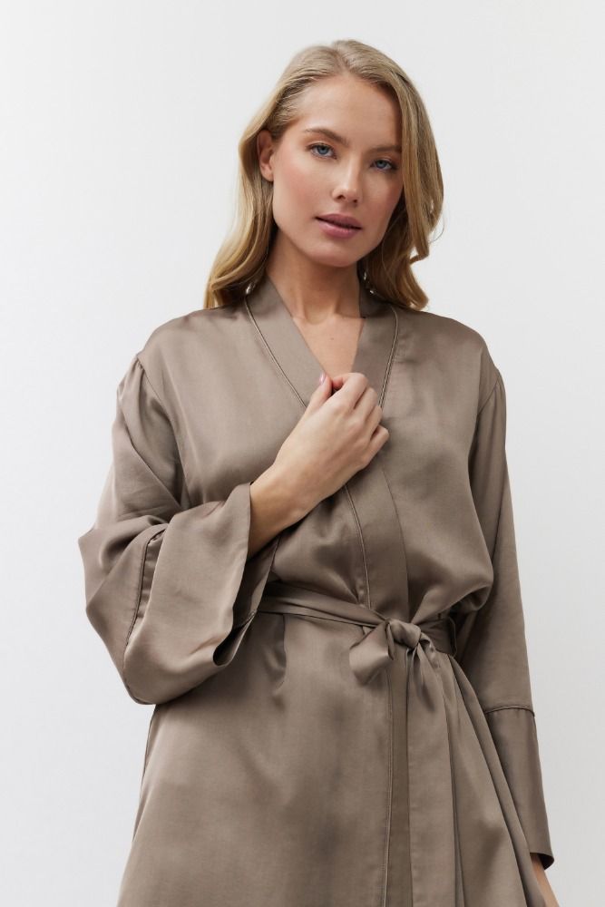 Lehký dámský župan – hnědý, viskózový (1699 Kč)