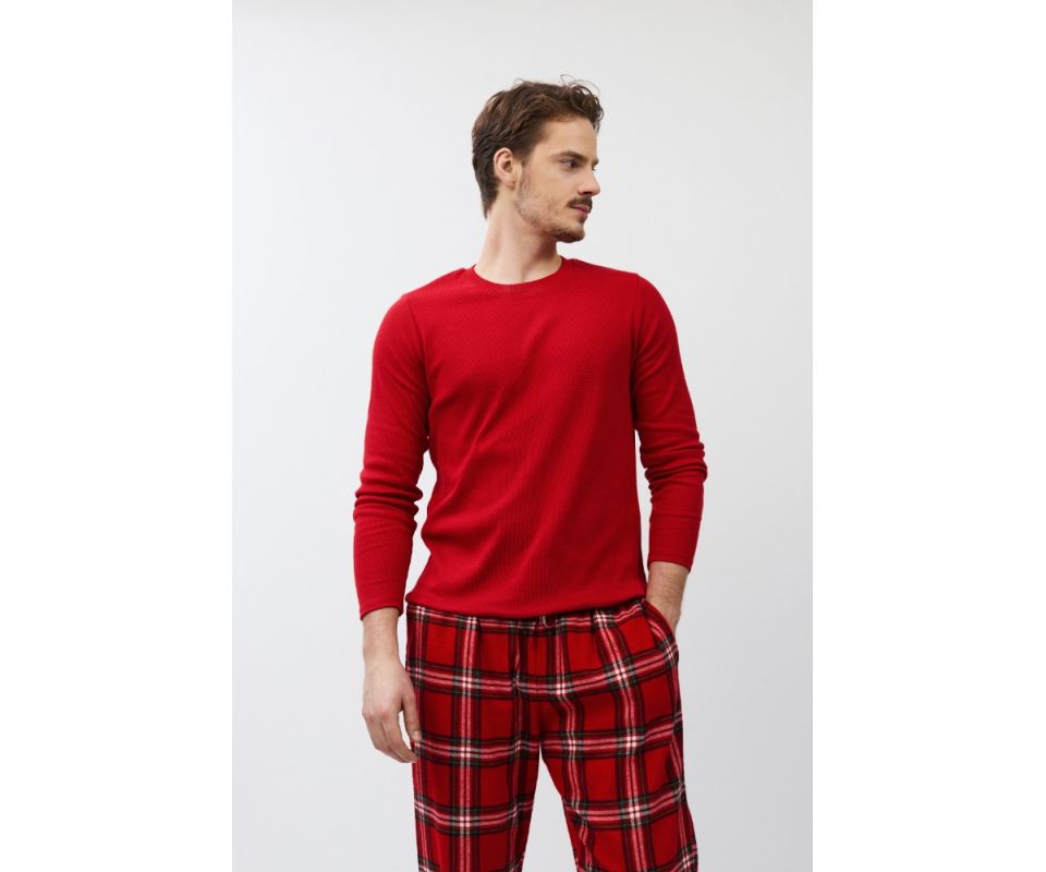 Pánský komplet kombinuje měkké bavlněné tričko s dlouhým rukávem a kostkované kalhoty s praktickými kapsami a mašlí v pase. Nadčasový vánoční design přináší styl a pohodlí během zimních dnů i nocí. Ideální jako sladěný set s dámskou variantou.