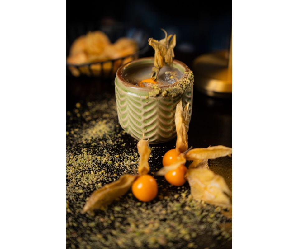 - PISTACHINO – pistáciový orgeat sirup, whiskey Teeling a pomerančový dotek