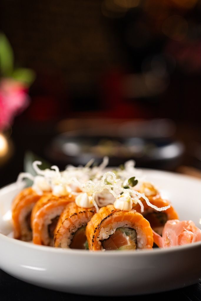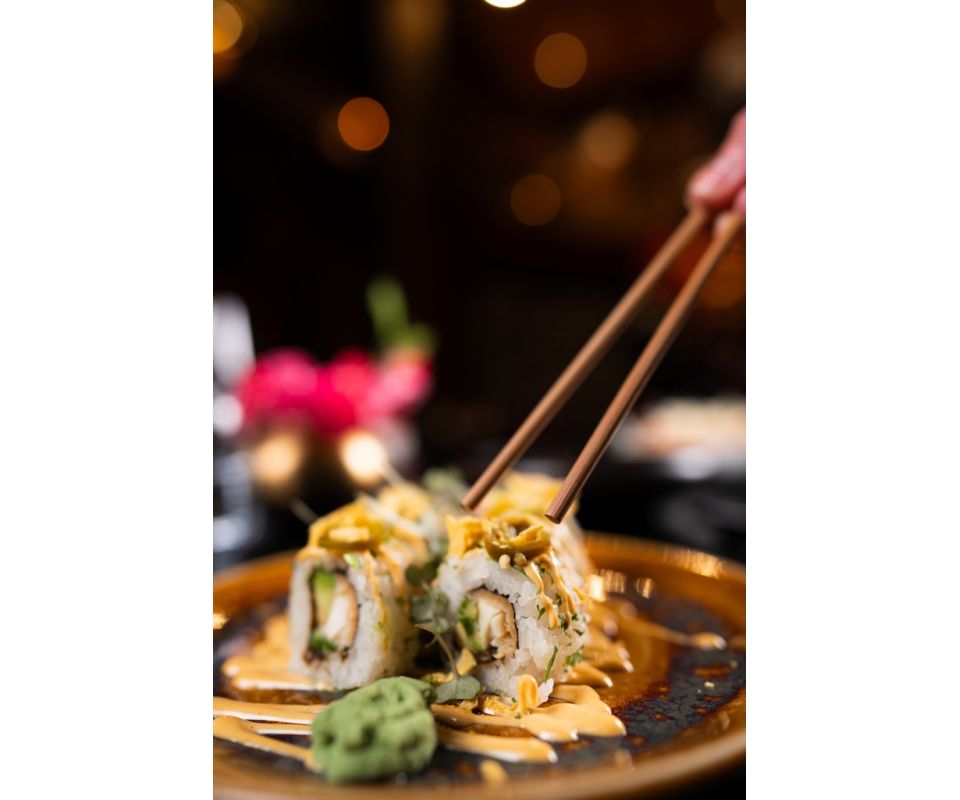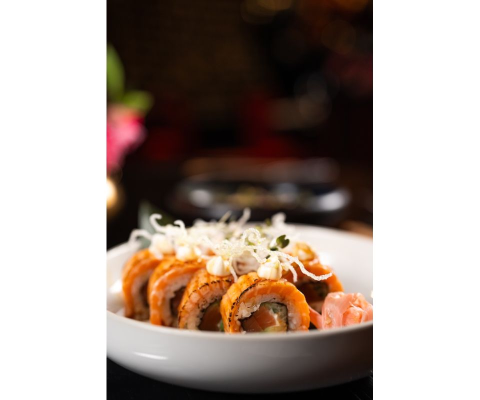 Ze sushi rolí zaujme Del Fuego s máslovou rybou, tortilla chipsy a jalapeños, nebo klasická Philadelphia s lososovým gravlaxem a křupavými nudlemi. Nechybí ani jemné sashimi s hřebenatkami, lanýžovým kaviárem a avokádovou pěnou.