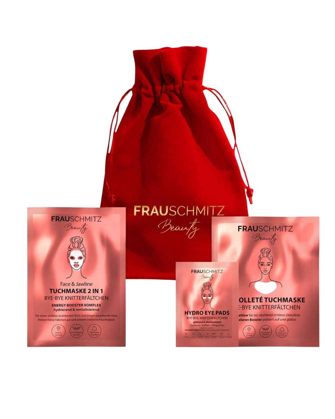 Elegantní set ukrytý v červeném sametovém pytlíčku potěší každou ženu, která miluje okamžité výsledky a smyslné beauty rituály. Tři typy vysoce účinných plátýnkových masek jsou napuštěné sérem s kyselinou hyaluronovou, extraktem z pivoňky, HerbaGlow™ komplexem a panthenolem — kombinací, která hydratuje, vyhlazuje jemné vrásky a dodává pleti svěží a šťavnatý glowy efekt. V balení najdete masku na obličej, masku na dekolt a jeden pár masek na oční okolí. Nechte svou pleť rozkvést.