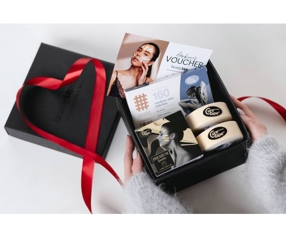 Limitovaný Celebration Box je originální dárek pro každého, kdo chce objevit svět kosmetického tejpování. Obsahuje certifikovaný tejp CureTape® Beauty široký 2,5cm, bestseller náplasti CrossLinq® a voucher na online kurz, který obdarovaného provede technikou tejpování jednoduše a krok za krokem. Vše je zabaleno v elegantní dárkové krabičce, připraveno potěšit každého beauty nadšence, ale i úplné začátečníky.