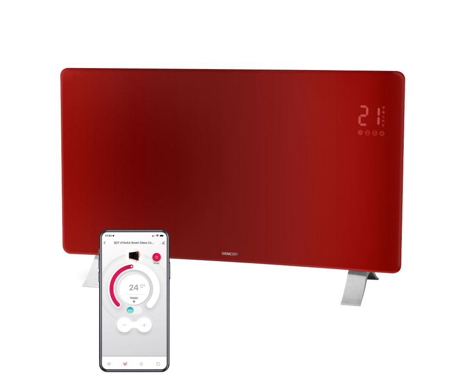 Designový konvektor s dotykovým ovládáním a Wi‑Fi připojením. Přes aplikaci Sencor HOME si můžete přitopit ještě před příjezdem. Dostupný v červené, bílé i černé variantě.