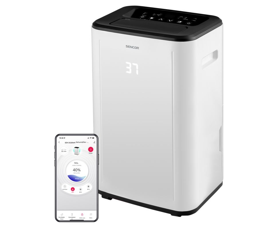 Výkonný model vhodný i pro větší prostory (až 89 m²). Rychle odstraní přebytečnou vlhkost, brání tvorbě plísní a díky tichému chodu neruší ani v noci. Lze ho ovládat přes aplikaci Sencor HOME.