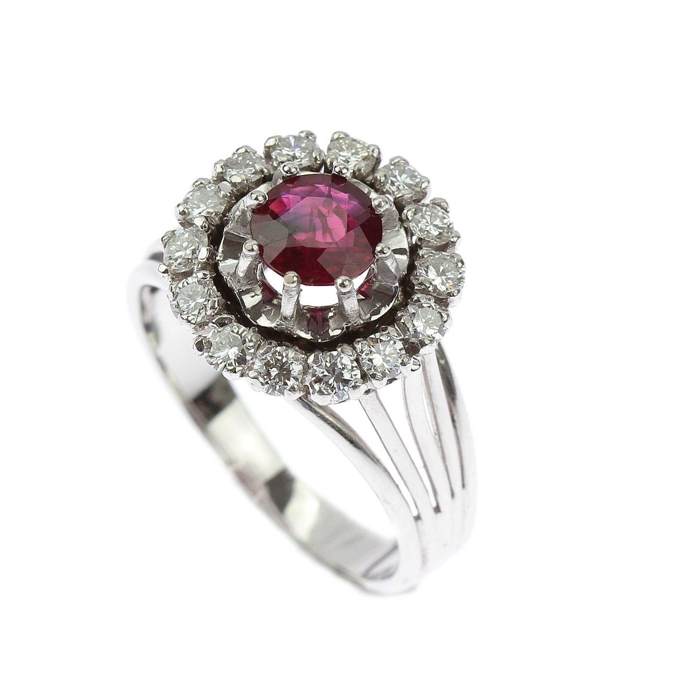 Platinový prsten s rubínem a diamanty – 180.000 Kč
