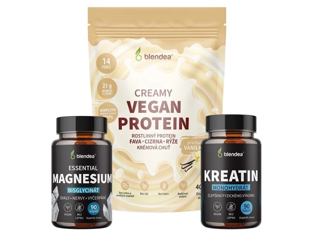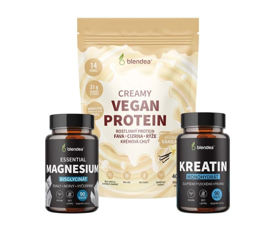 Pokud je vaše drahá polovička ve fitku jako doma, potěší ji Blendea Vegan Protein s jemnou vanilkovou příchutí. Z rostlinného proteinového prášku si snadno připraví hedvábně jemný drink s 21 gramy bílkovin v jedné porci. A chcete‑li dopřát ještě víc, sáhněte po Blendea Fitness balíčku, který kromě proteinu obsahuje také Magnesium Bisglycinát a Kreatin monohydrát – trio ideální pro růst svalů, jejich regeneraci i podporu fyzického výkonu.
