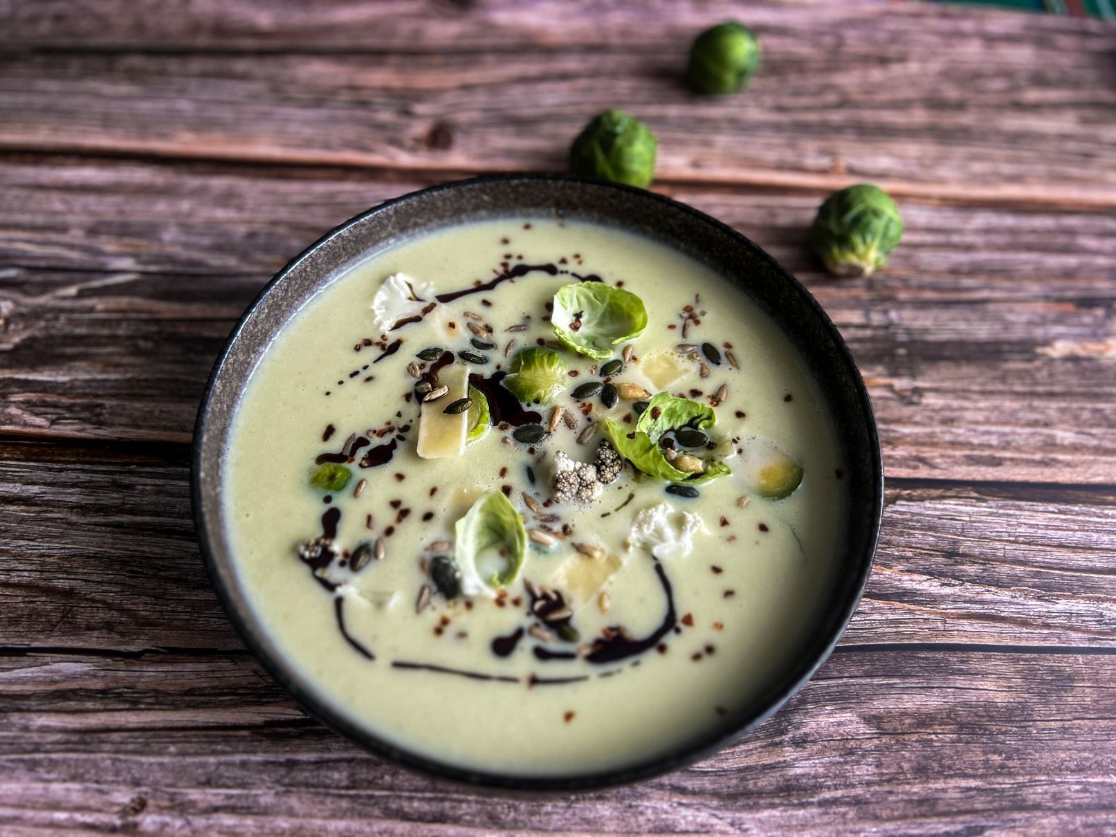 Na přípravu této velmi chutné polévky využijete i zbytky, pečenou růžičkovou kapustu z předchozího dne nebo košťály z brokolice a květáku, které byly původně přílohou k jinému receptu.