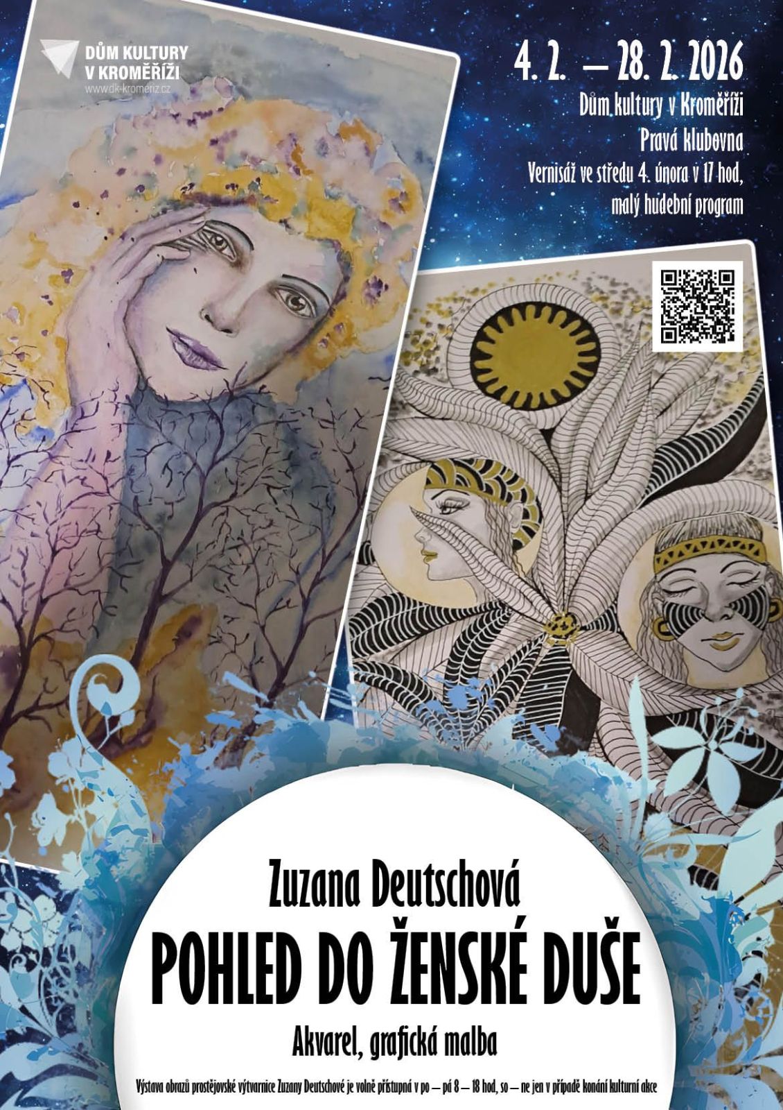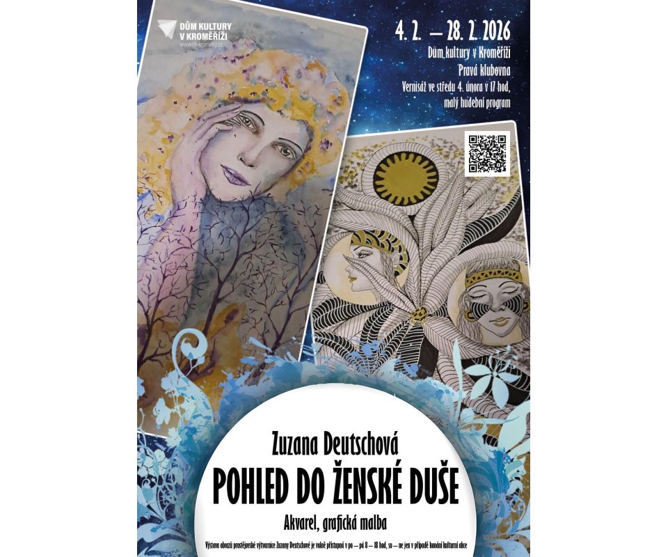 Ve středu 4. února až do konce měsíce února 2026 vystaví svou tvorbu v komorním prostoru v prvním poschodí Domu kultury v Kroměříži prostějovská malířka Zuzana Deutschová. Vernisáž proběhne 4. února v 17 hodin.