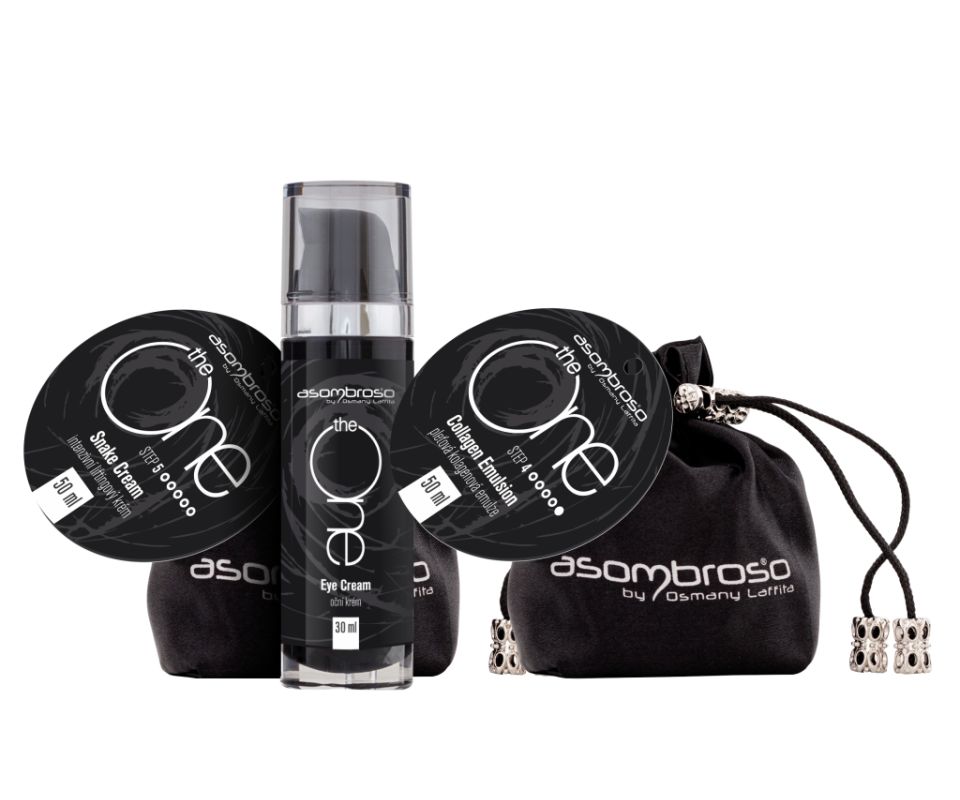 - Set pro zpomalení stárnutí pleti – najdete v něm kolagenovou emulzi, oční krém a bestseller Asombroso – krém s hadím jedem The One Snake Cream.