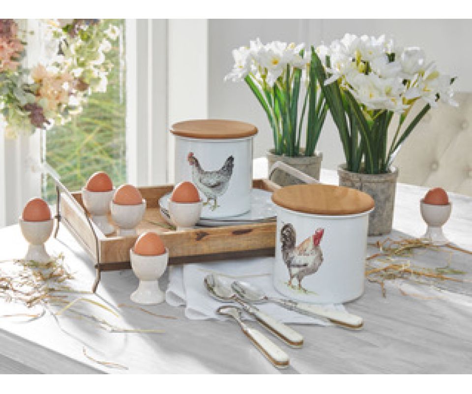 Snídaňová prkénka ve tvaru zajíčka, 2dílná sada, LOBERON, 778 Kč • velikonoční vajíčko, 3dílná sada, LOBERON, 389 Kč • kroužek na ubrousky se zajíčkem, 4dílná sada, LOBERON, 498 Kč • miska, 2dílná sada, LOBERON, 998 Kč • dekorativní květiny, 2dílná sada, 898 Kč • etažér na vajíčka se zajíčkem, LOBERON, 389 Kč • talíře ve tvaru vejce s motivy zajíčků, 4dílná sada, LOBERON, 498 Kč • podložky ve tvaru slepiček, LOBERON, 389 Kč.