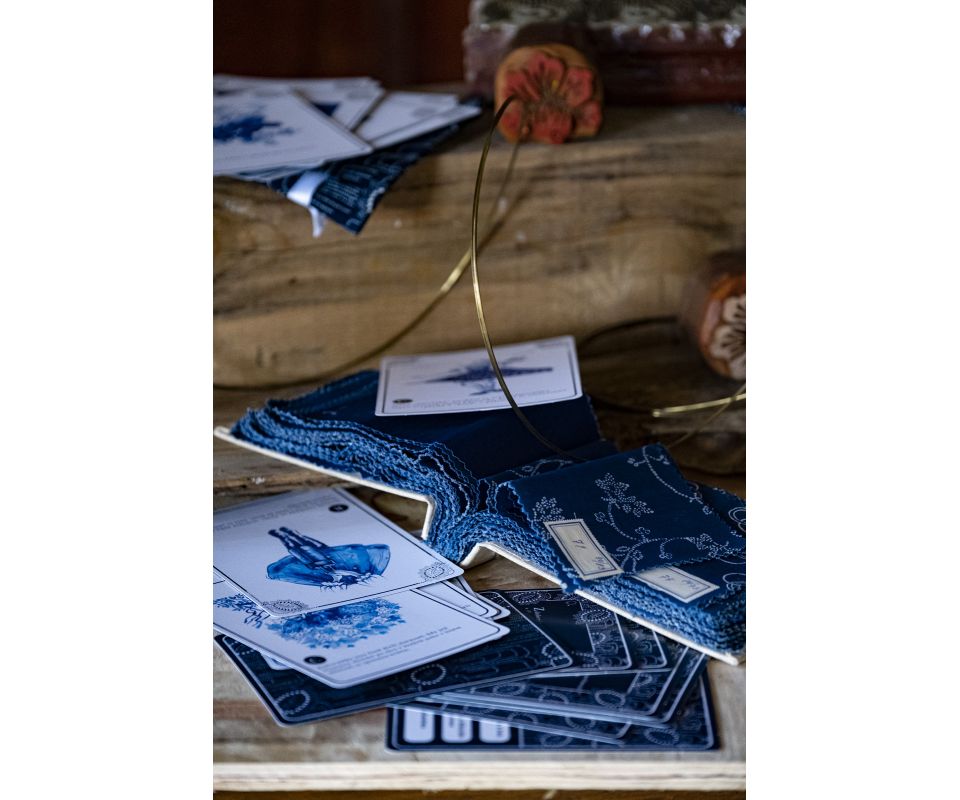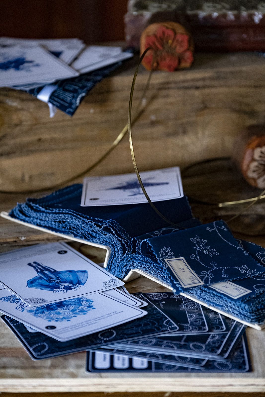 Osako zároveň pracuje s modrotiskem ve dvou dalších projektech. Pro značku R. Jelínek připravuje dárkové balení inspirované valašskou lidovou kulturou – modrá barva zde symbolicky odkazuje i na zralé švestky.