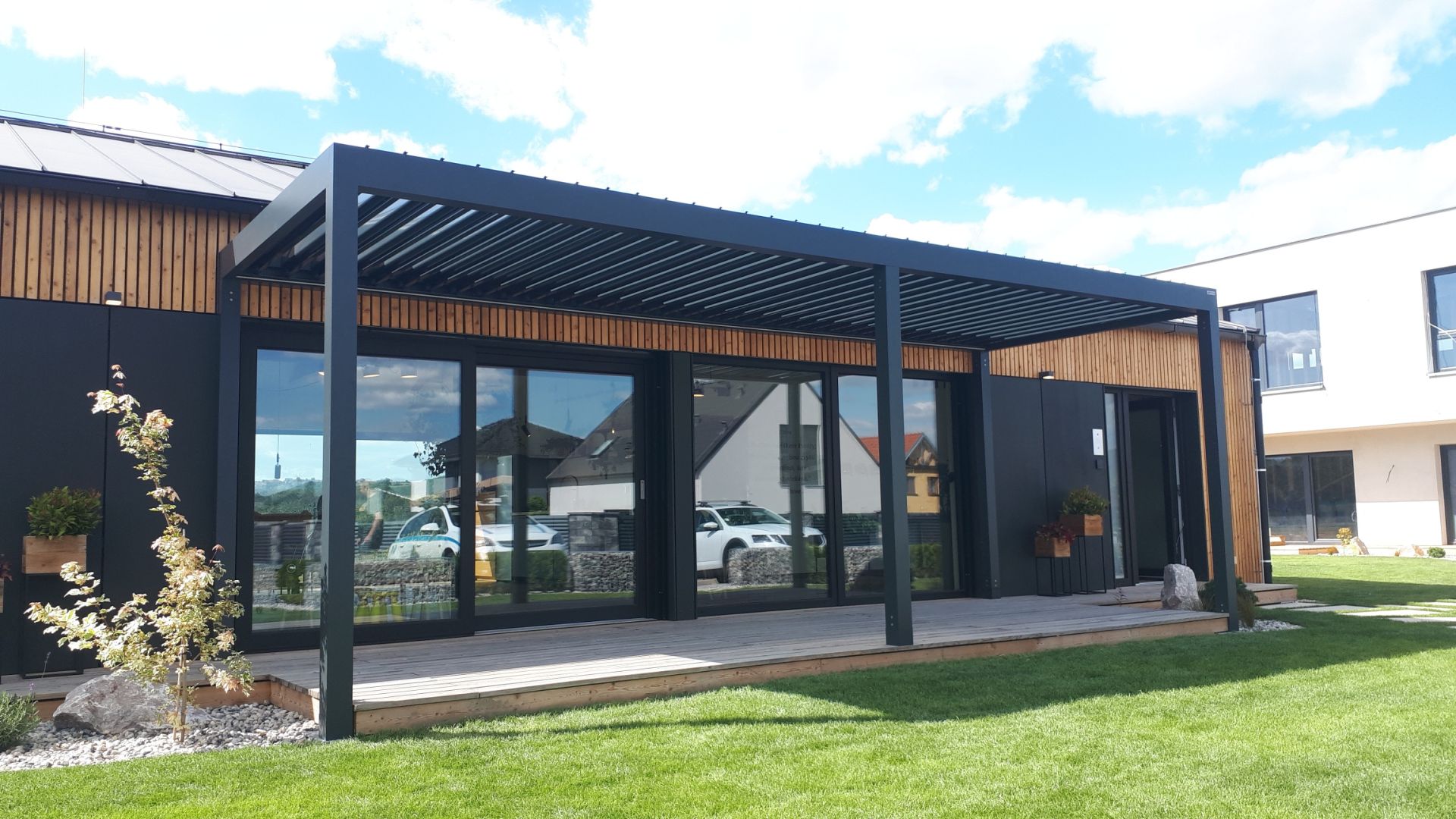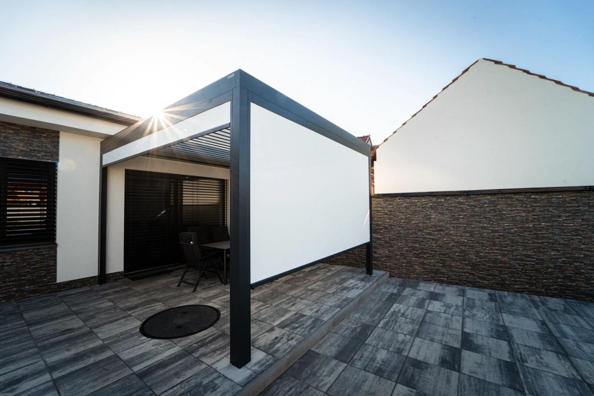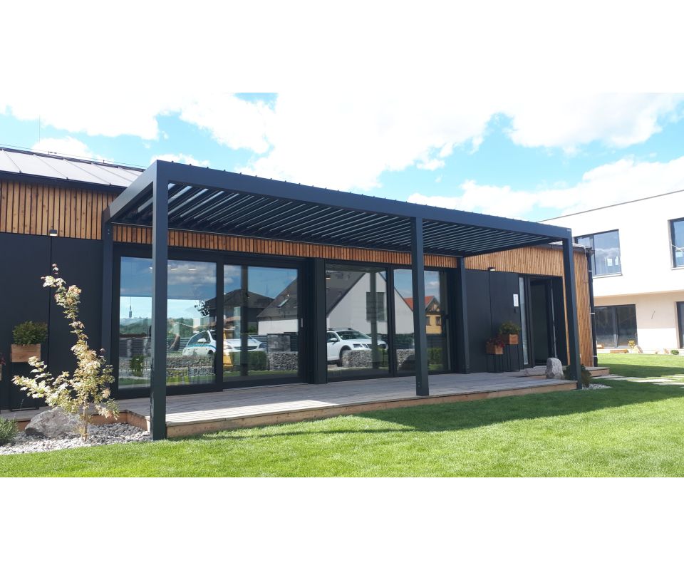 Je teplý květnový podvečer. Sedíte v pohodlném křesle, přes naklopené lamely dopadá poslední světlo dne, z grilu voní žebírka a děti pobíhají po trávníku. Nepřipomíná to resort na jihu Evropy, jste doma, pod bioklimatickou pergolou. Terasa se i v našich podmínkách stává plnohodnotným obytným prostorem, prodloužením obývacího pokoje. A pergola je jeho klíčovým prvkem.
